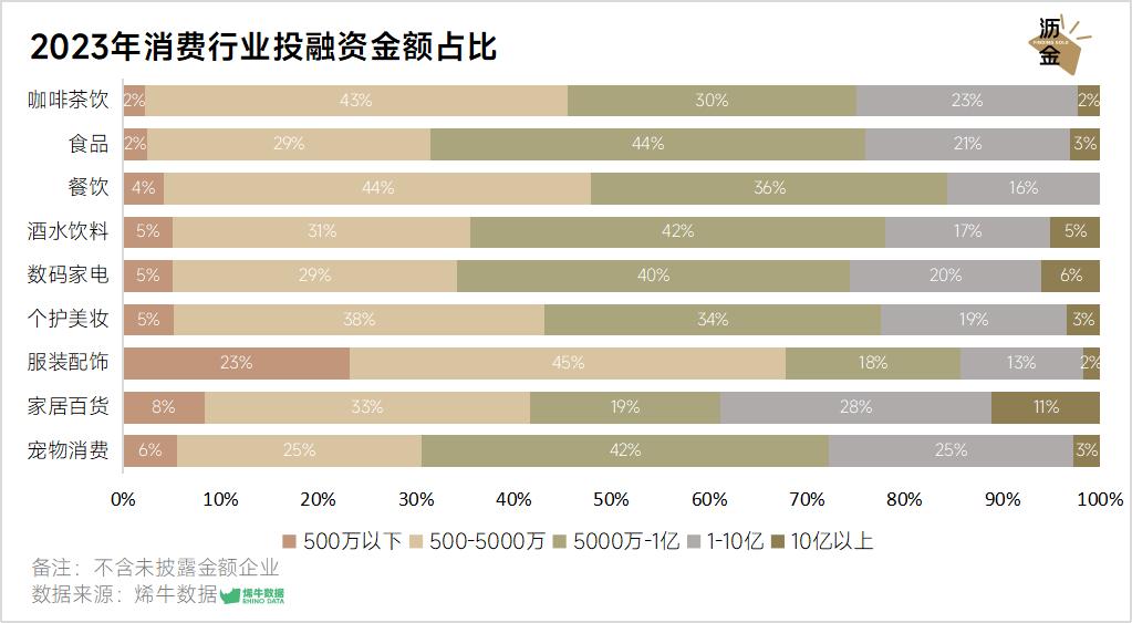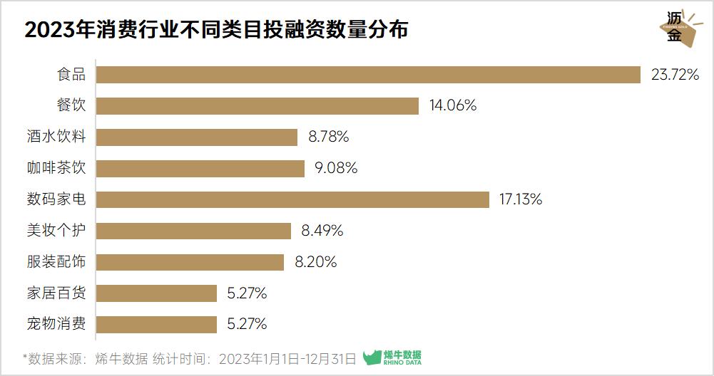 2023年的大額融資項目多分佈在食品、餐飲、數碼家電等熱門賽道,除此之外服裝配飾、寵物消費也有突出表現。