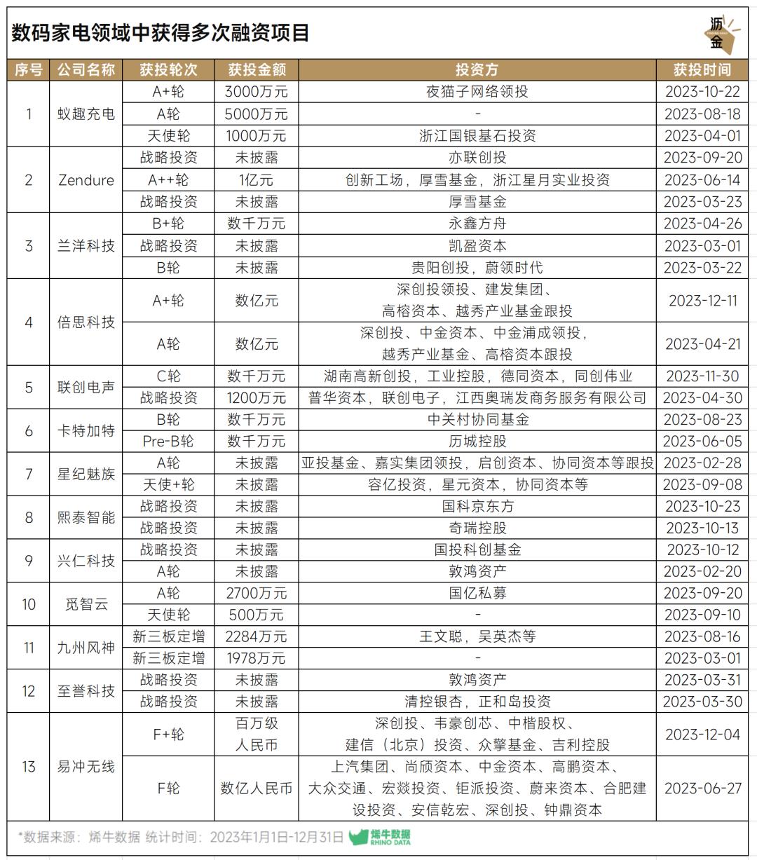 該領域去年獲得多次融資額的是蟻趣充電、蘭洋科技、倍思科技等企業,多集中在數碼零配件製造商中。