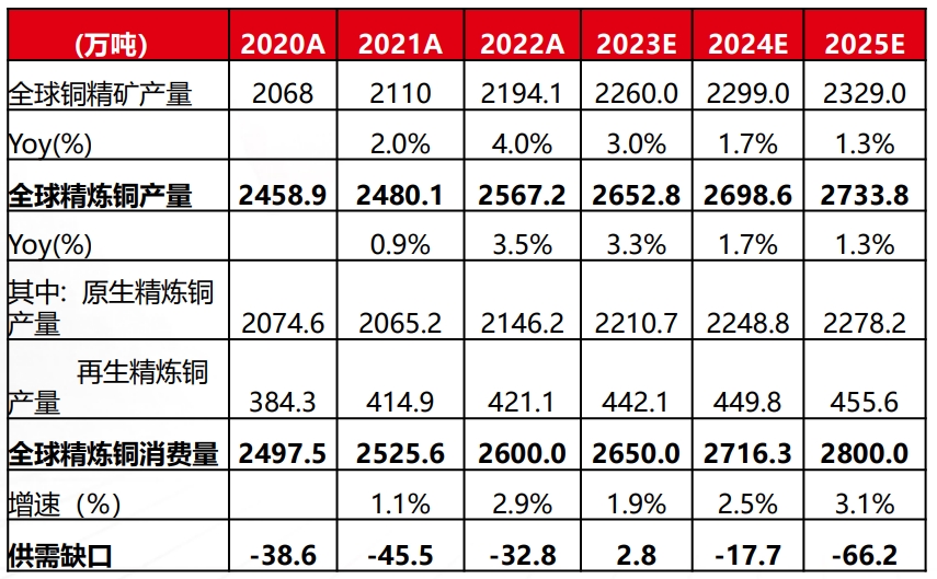 中郵證券研究認為,銅將是2024年確定性最大的有色金屬之一,預計2024、2025年全球精煉銅缺口分別為17.7萬噸、66.2萬噸。
