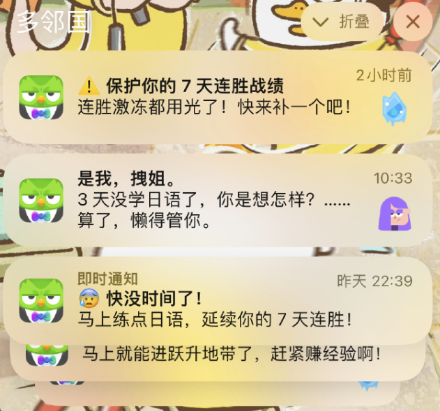 所以多鄰國會把這個數字放在最顯眼的地方,不斷提醒大家,這樣每天都會有人回來,因為人們不願意失去連勝記錄。
