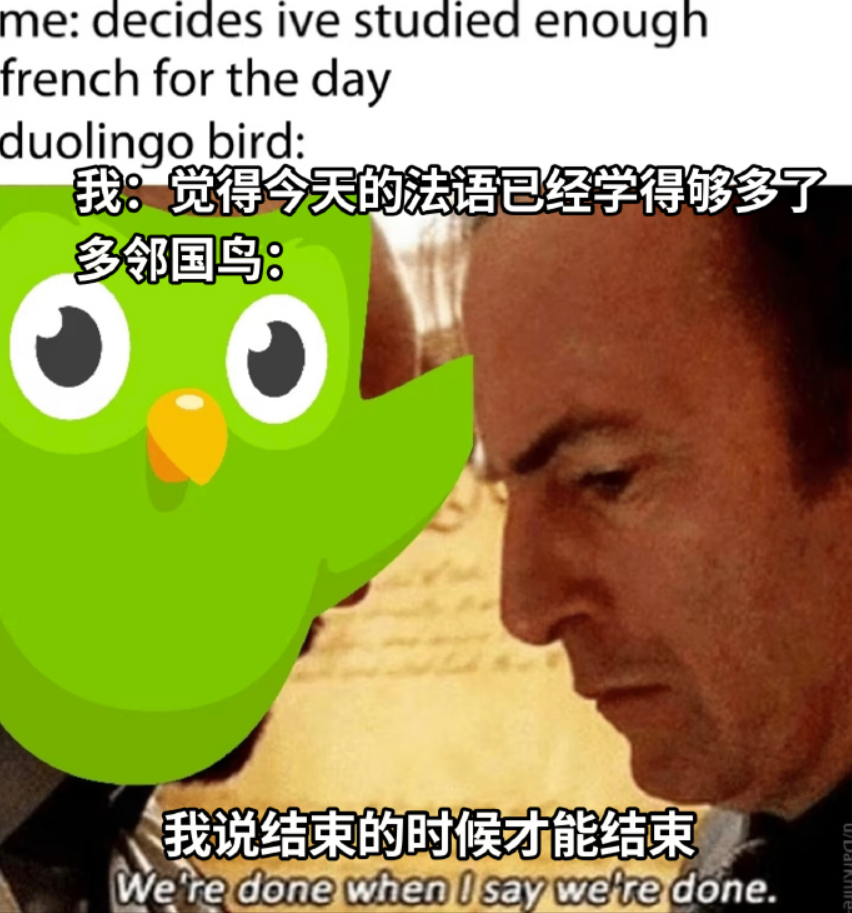 這隻奪命小綠鳥堪稱兩幅面孔,每天上演變臉,今天你要是沒學,它就直接氣到融化;但凡你要學上幾分鐘,它就喜上眉梢;如果堅持了上千天,那不得了了,直接火力全開。。。
