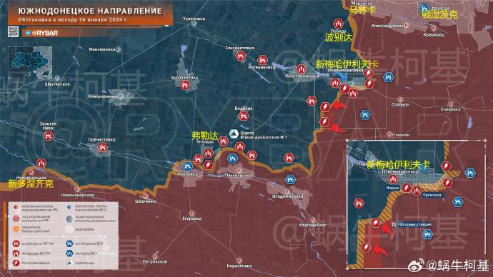 2、馬林卡以南:俄軍在新梅哈伊利夫卡西南推進,目前距T-0524公路5公里。