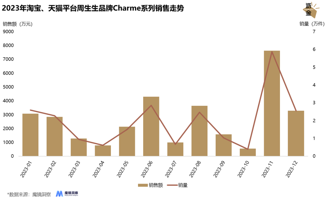 2023年淘寶、天貓平台周生生品牌Charme系列銷售走勢