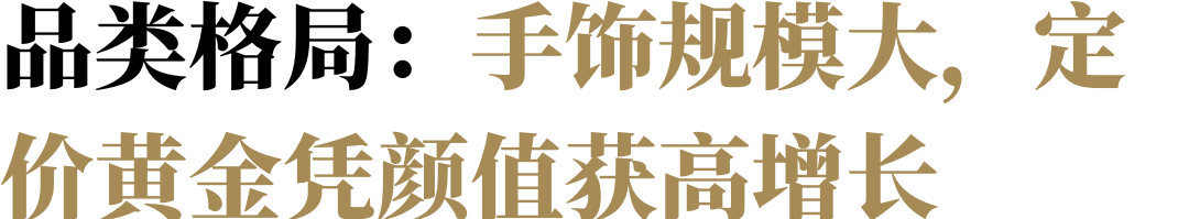 2. 品類格局 手飾為黃金市場的主流品類,定價黃金品類的銷售增速達166.0%,消費者為高顏值買單意願較高。