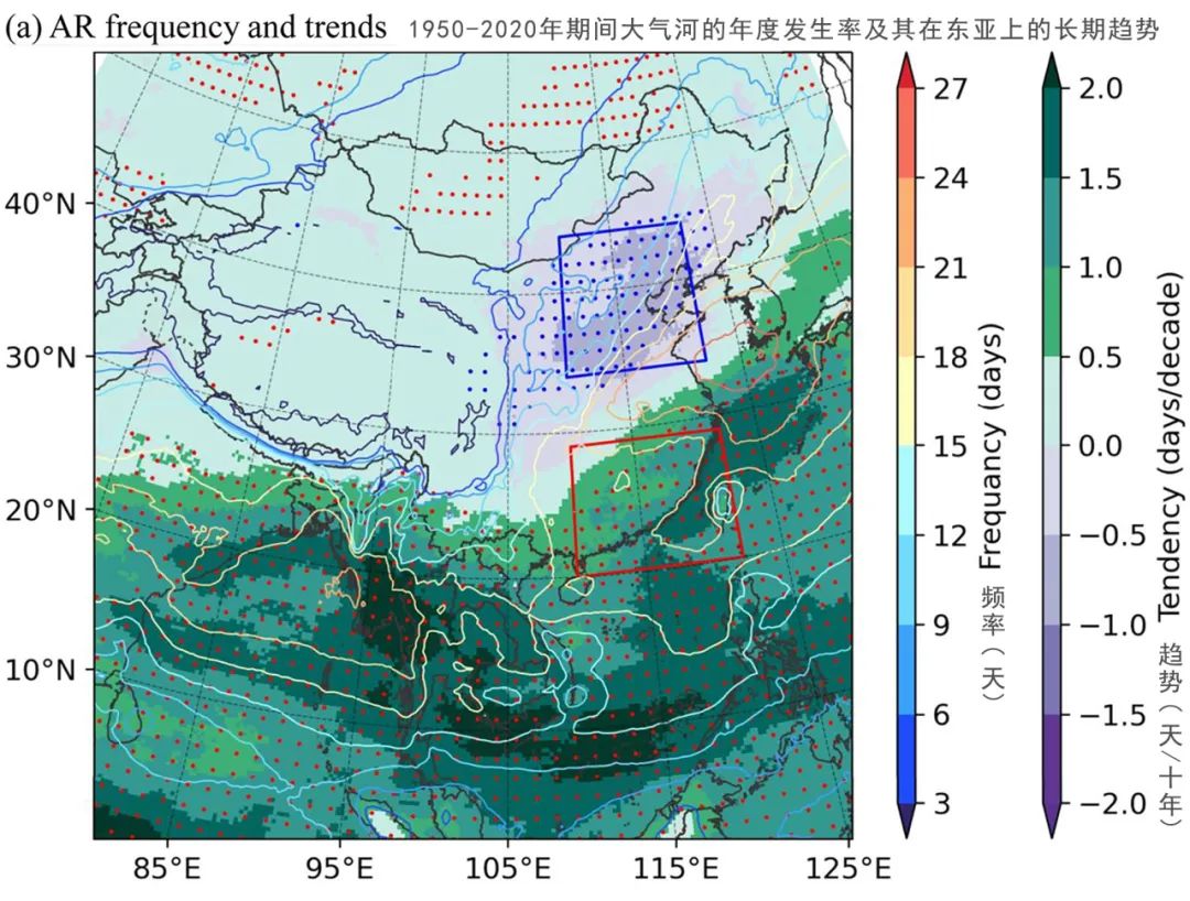 東亞大氣河年頻率變化趨勢對年降水變化趨勢的貢獻率