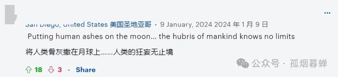 “人類真是狂得沒邊了,我們做什麼要把骨灰給撒到月球上去呢?”