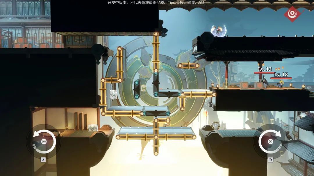 遊戲的主線副本均為類銀河惡魔城的大型箱庭地圖,玩家行進路線為線性,在2D視角的3D場景中,跟隨任務指引進行探索、解謎和戰鬥,中間有一些隱藏房間放置寶箱。客觀來説,《歸龍潮》的地圖設計不算硬核,但這種副本模式能帶給手遊玩家新鮮感,也符合儘可能多的手遊玩家的體驗難度。