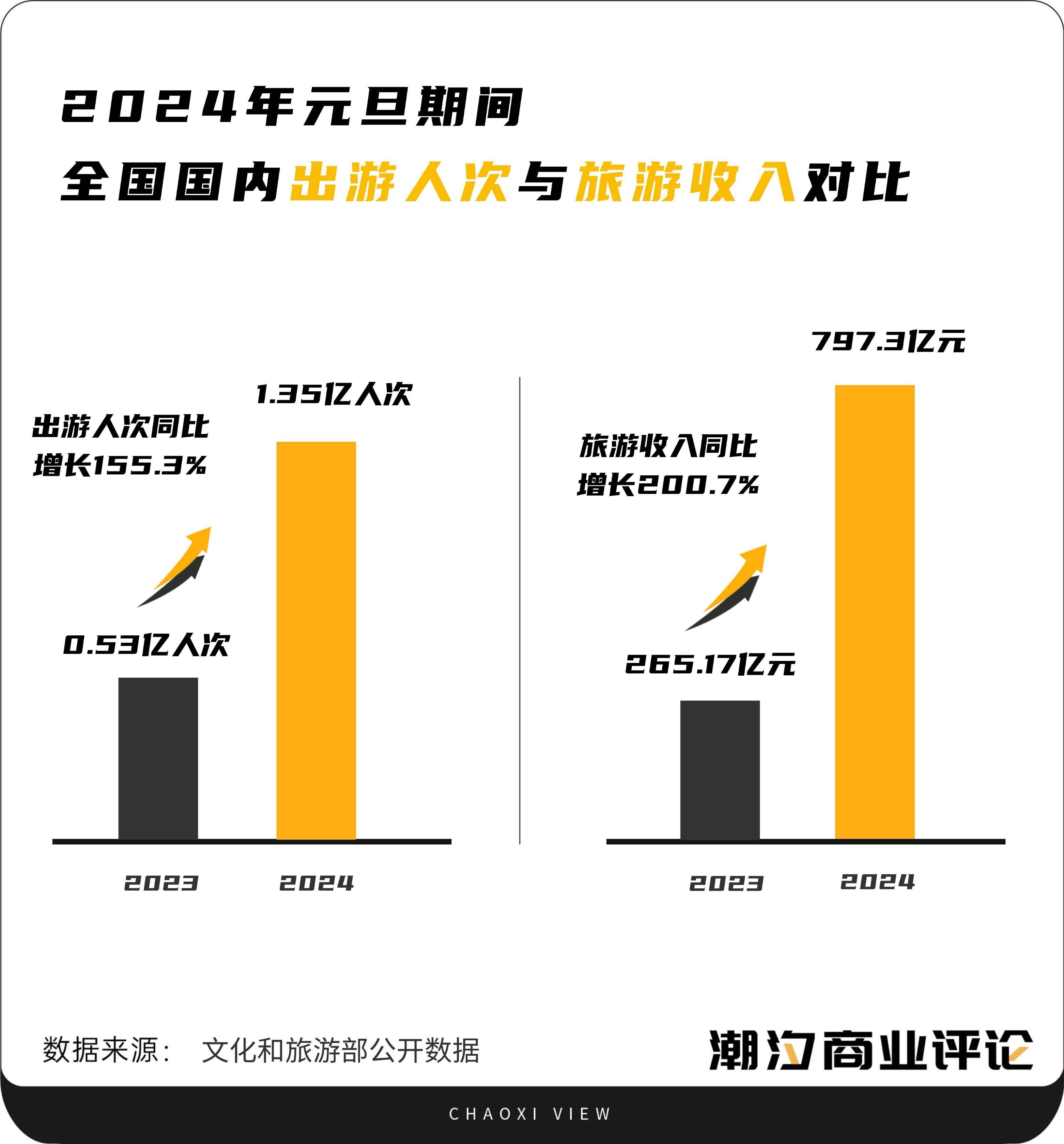 這股熱浪大有持續之勢。作為2024年旅遊業的開端,元旦期間全國國內旅遊出遊1.35億人次,同比增長155.3%;實現國內旅遊收入797.3億元,同比增長200.7%。因“南方小土豆”話題爆火的哈爾濱,就是境內眾多旅遊目的地中的佼佼者。