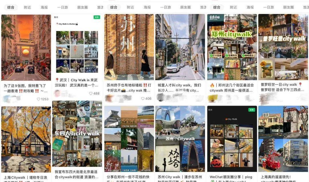據小紅書《2023年度生活趨勢觀察報告》顯示,2023年citywalk相關話題在小紅書瀏覽量超過21億次,搜索同比增長140倍,有超過370萬篇筆記分享了相關故事。在短短的一年內,citywalk的範圍不斷擴大,從北上廣等一線城市向二三線城市擴展,餐飲、購物、住宿等旅遊產業同步迎來新機遇,成為城市旅遊產業的重要部分。北京、山東等地甚至已將其列入促進文化旅遊休閒的行動方案,上海還專門開設了公交巴士組成的citywalk路線。