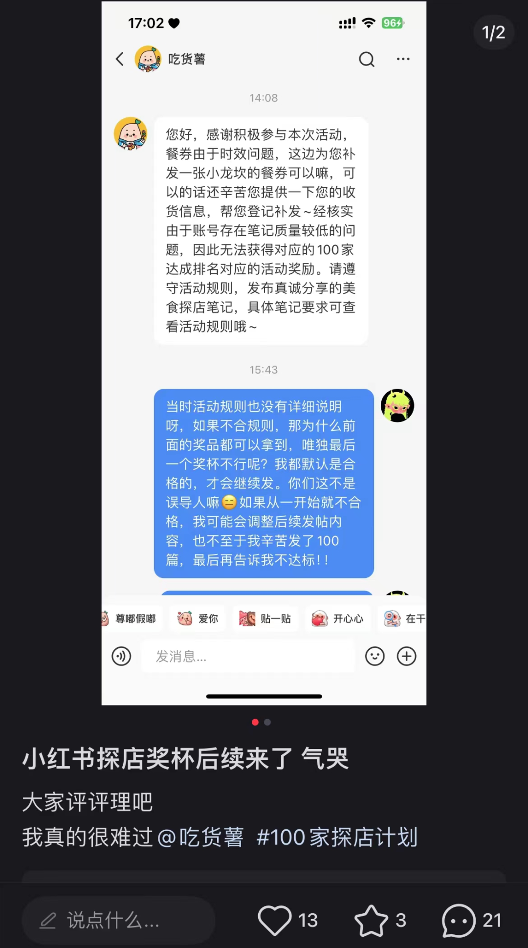 小紅書推出的以“100家探店計劃”活動,也被很多參與者吐槽系統有Bug,比如探店筆記已發佈卻被系統統計進度卡住,沒有拿到活動獎品,筆記發佈計數出錯。所以參與的達人越來越少。這些事件疊加發生,意味着小紅書還需要完善本地生活服務的各個環節,多試水幾次。