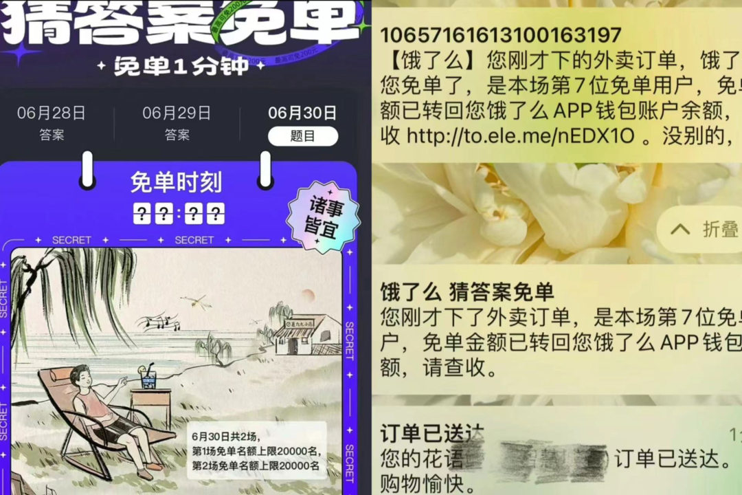 例如七夕的鮮花配送、“24小時*7送藥”服務的活動,以及2023年9月22日新款iPhone15的發售。此外,其還推出了“猜答案免單”活動。公開數據顯示,2023 年有超4000萬人次參與免單答題,而參與免單活動的商家超過150萬家,參與商家規模是2022年的2.5倍。可以看出,餓了麼在細分、非標即時配送場景中尋找增量和機會。