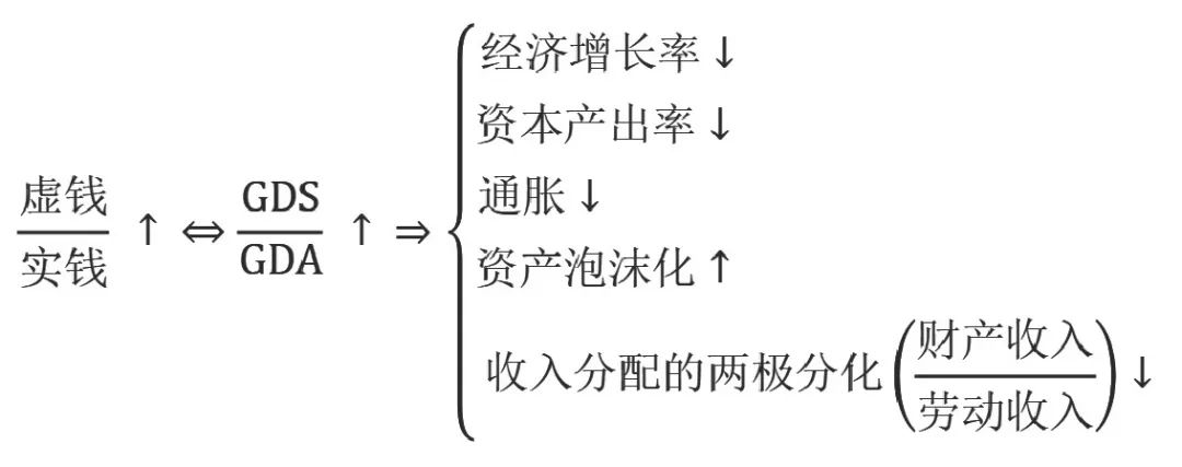 形式上看,這個公式可以説是同義反復,但有必要區分。因為雖然虛錢產生GDS,但二者數量上不同,萬億級的GDS也許只需要千億級的虛錢就可正常交易。
