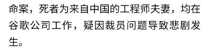 之前的錯誤報道稱兩人很可能是因為被谷歌裁員後一時想不開才導致這一悲劇,尤其2023年開始,谷歌動不動就大規模裁員,使很多家庭難以度過年關。