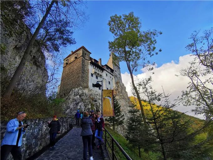 我跟隨人羣從山腳沿斜坡拾級而上。進入城堡大門的台階很高,磚瓦嶄新,顯然是後來修建的。據説,原本吸血鬼城堡沒有入口的階梯,因為德拉古拉殺人無數、樹敵太多,為避免偷襲者報復,他將城堡的大門改建成了城牆。來者欲進入城堡,只能到城堡南邊,沿着上面扔下來的繩梯爬上去。