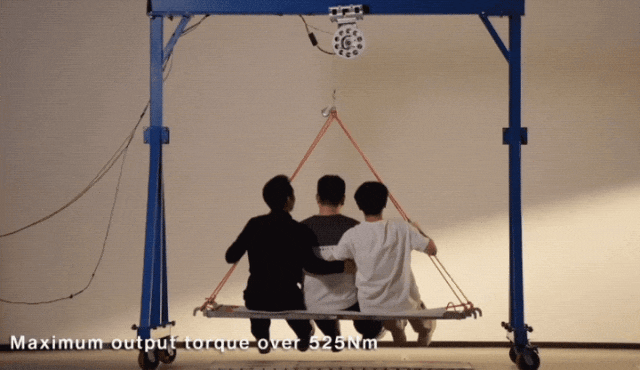 一個為D190,其額定輸出轉矩為150Nm(牛米),但最大可達525Nm,直接可以拉動3位成年男性。