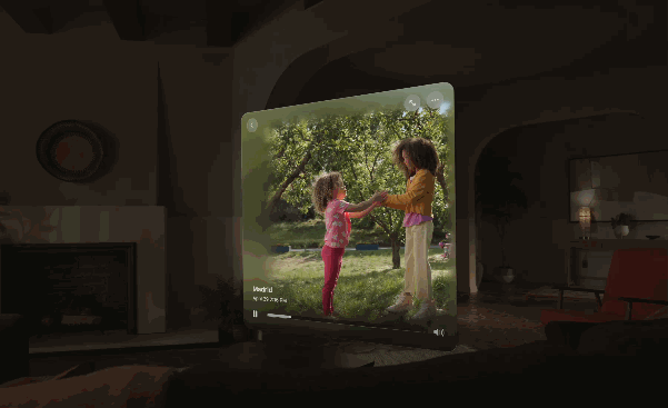 可以看到 VisionOS 的 UI 沿襲了 macOS、iOS 和 iPadOS 的視覺風格,界面簡潔明瞭,動效細膩,通過眼球運動移動光標、手指捏住拖動調整窗口,這種果味交互也符合直覺。
