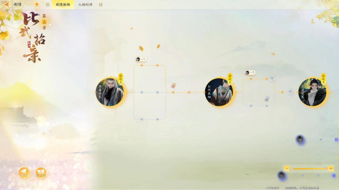 剛才提到,《射鵰》沒有修改原作的劇情走向,在內容包裝上,玩家屬於一個叫做「烏蟾院」的特殊組織。玩家雖會與原作角色產生交集,但更像是一個觀察者,大多數情況並不會改變原作中的事件結果,但仍有可能通過某些關鍵節點的選擇,去拯救一些原著中的「意難平」。