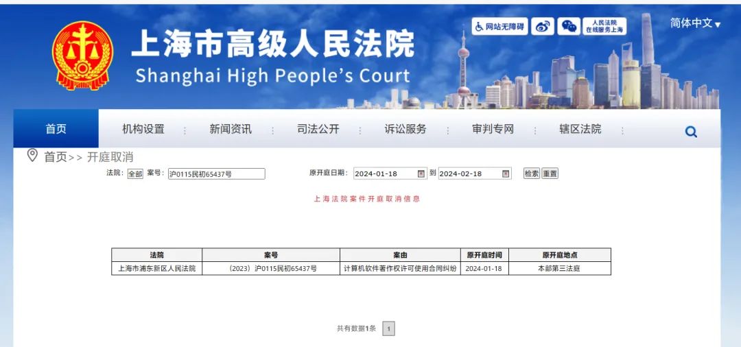 據上海市高級人民法院網站中公開信息顯示,原定於1月18日開庭的上海網之易網絡科技發展有限公司訴暴雪娛樂有限公司計算機軟件著作許可使用合同糾紛案([2023]滬0115民初65437號 ),目前顯示開庭已取消。