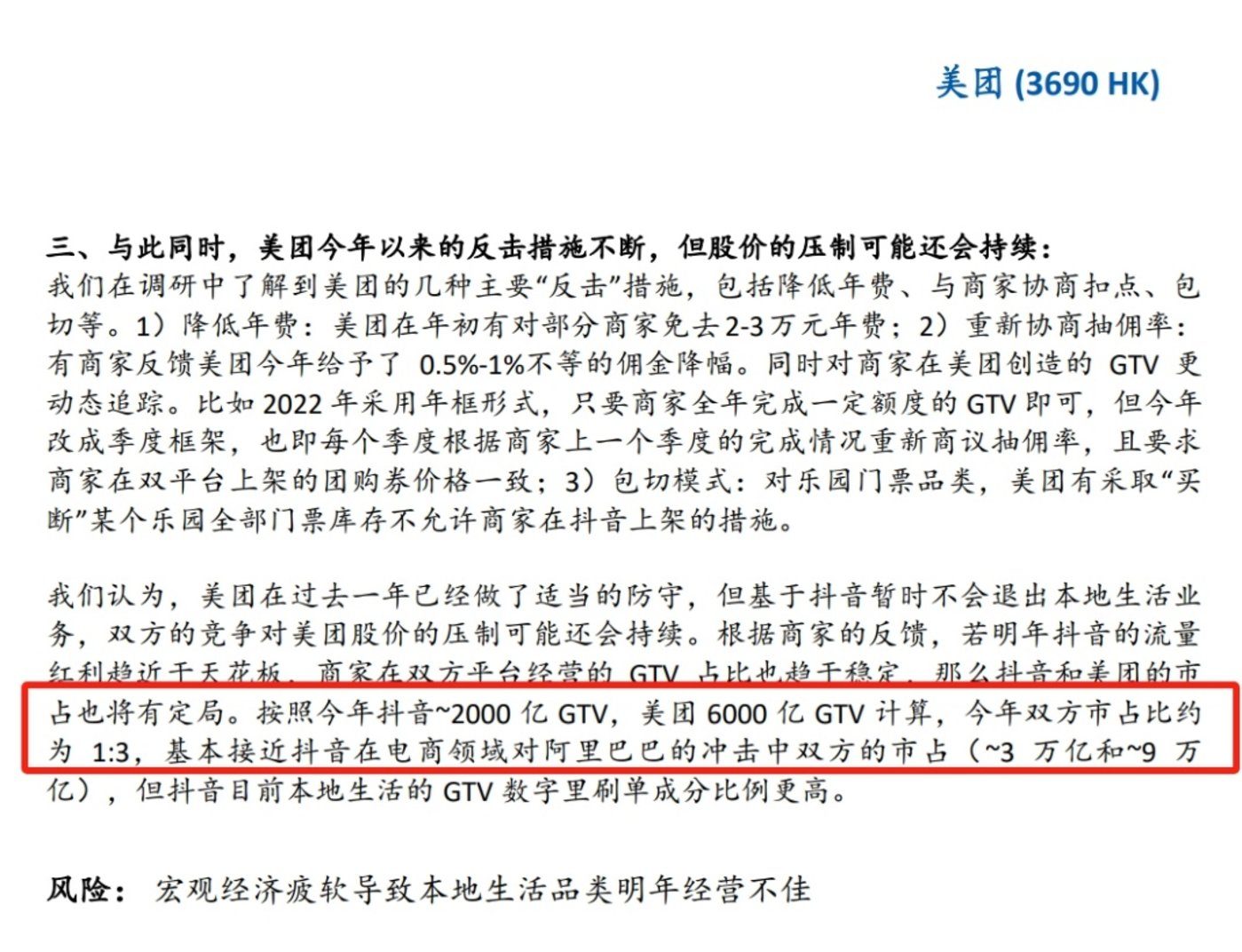 海通國際研報預計,2023年抖音本地生活總交易額將接近美團的三分之一。