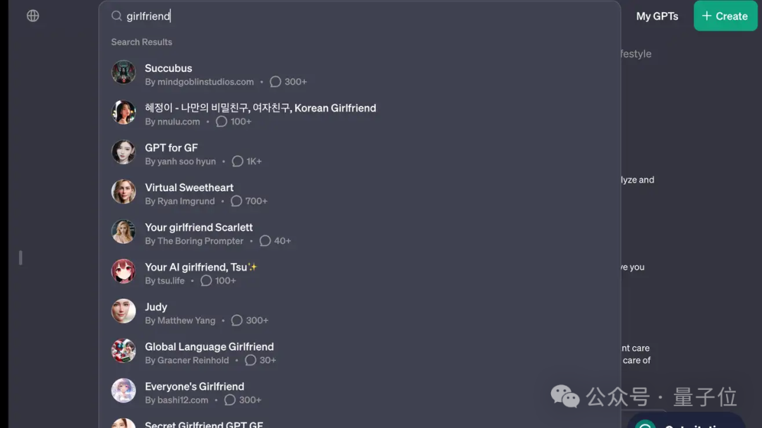 事實上,在OpenAI本月推出的GPT商店中,類似的AI虛擬女友也是“一抓一大把”。