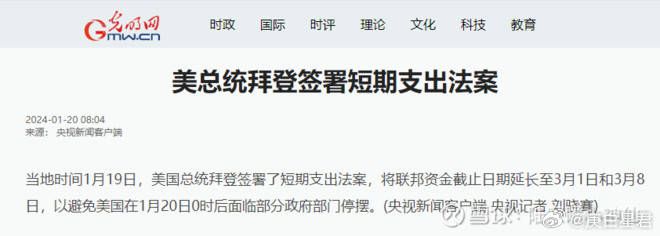 我們看內容就明白了:美國所有政府機構,獲得撥款的期限,將會延長到3月1日。
