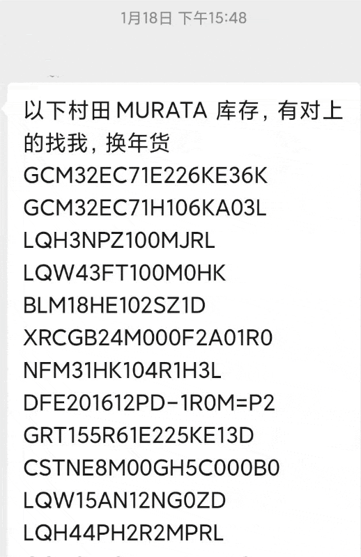 **“全都在搶!大代理商的庫存,只要客户還有需求的,全部提貨了。”**這幾天在大家的朋友圈、羣聊裏,村田的電感存在感變高了,找貨的、賣貨的都出動了,統貨商也來了。