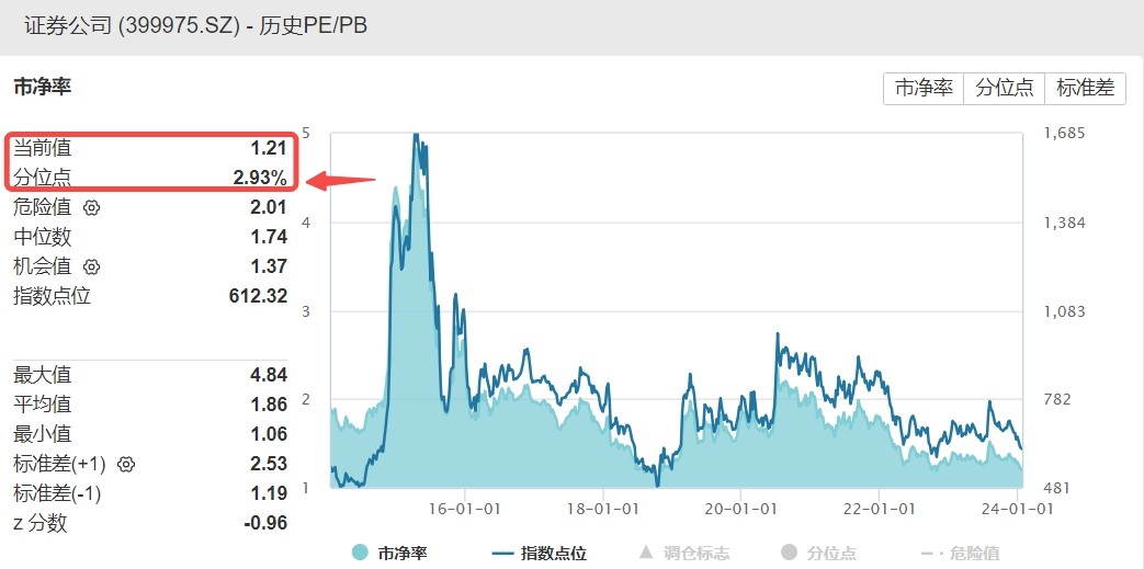 截至目前,券商板塊最新估值PB為1.21倍,處於近10年來2.93%分位數水平。伴隨着經濟復甦企穩,景氣度修復,流動性寬鬆持續,券商板塊或有望迎來估值和業績雙擊。