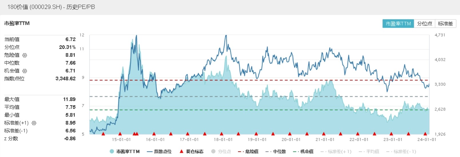 經過前期調整,當前上證180價值指數估值已跌至歷史低位。數據顯示,截至收盤,上證180價值指數市盈率為6.72倍,位於近10年20.31%分位點,從市盈率角度來看,當前板塊已具有較高的配置性價比。