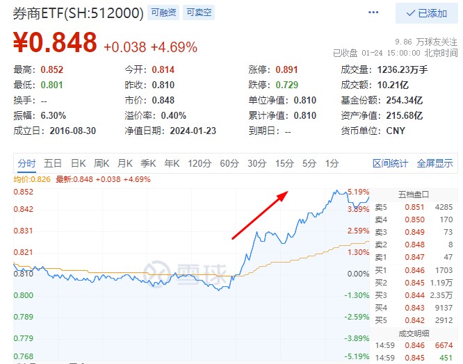 券商ETF(512000)午後暴拉5%!盤後叒出“王炸”,降準降息!_風聞