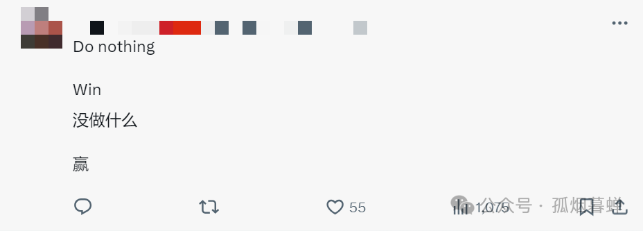 “中國的取勝之道:1、什麼都不做;2、躺贏。”