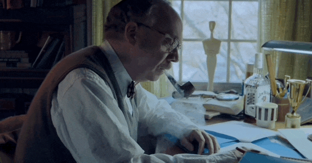 電影開場,就在保羅桌子頭擺放了一個類似奧斯卡小金人造型的擺件。
