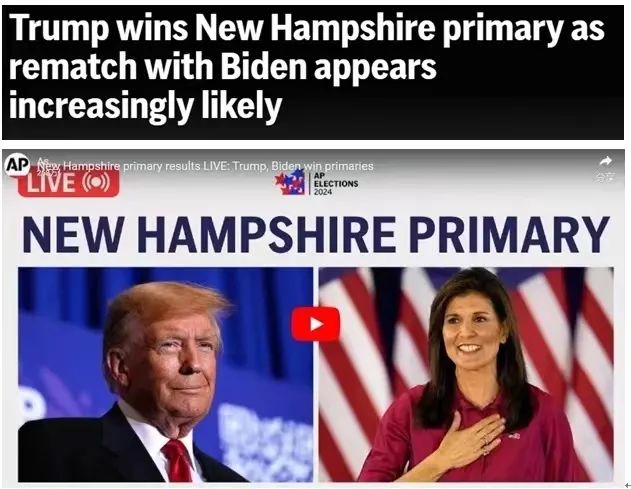 1月23日,在新罕布什爾州共和黨初選中,懂王再次勝出。