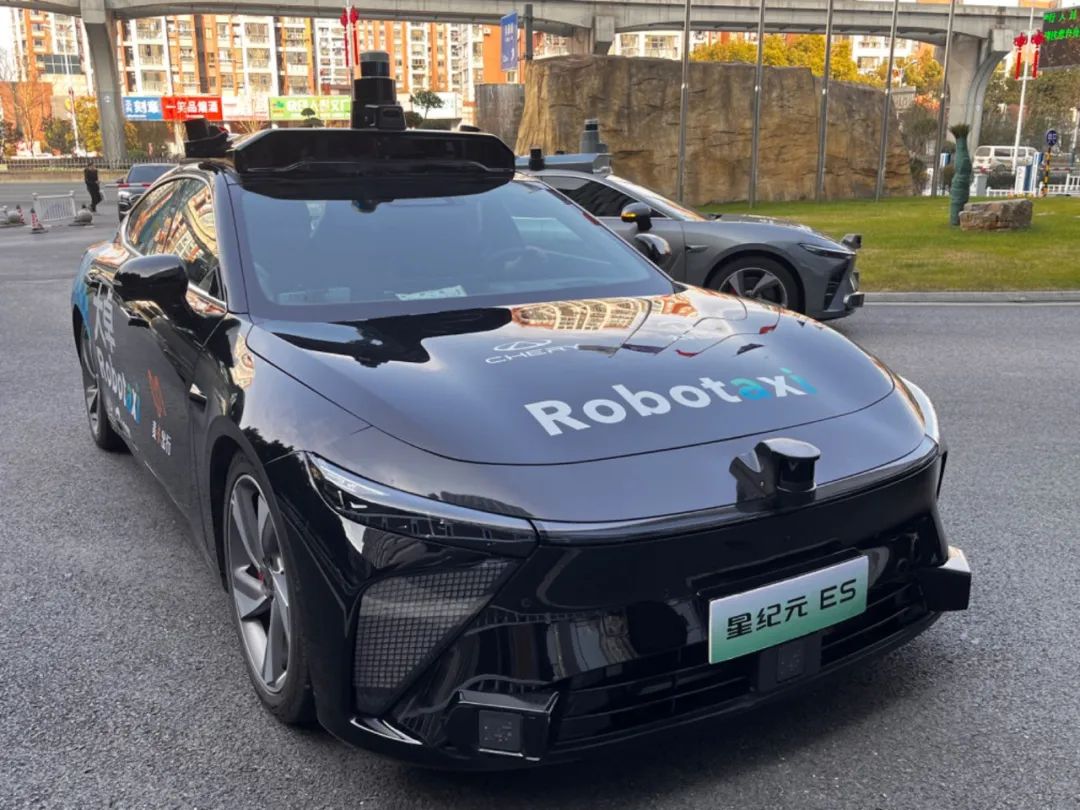 現場展示的Robotaxi樣車,基於星途星際元ES車型改造,加配了7個2M攝像頭、1個禾賽128線激光雷達和4個側方補盲雷達,以及6個毫米波雷達,並採用基於大算力芯片開發的域控制器,集成高精地圖和 RTK高精定位技術。
