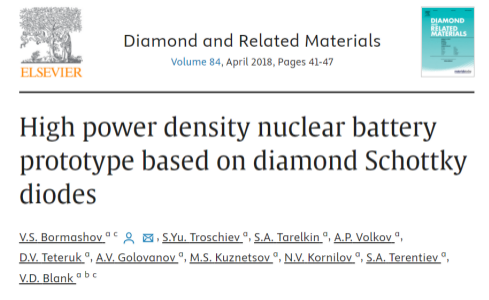 時光匆匆來到2018,俄羅斯科學家製造出了一種新型的核電池,成果以論文的形式發表在了學術期刊Diamond and Related Materials上,所採用的技術方案是金剛石+鎳-63。