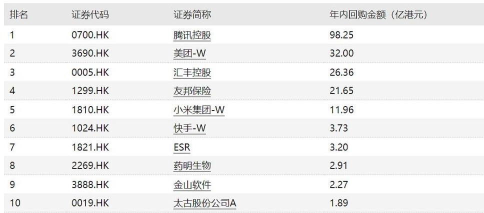 產業資本方面,港股大力回購也在持續。Wind數據顯示,截至1月24日,今年已有97只港股獲公司回購,14只個股年內累計回購金額超億港元。其中,中概互聯ETF(SH513220)多隻成份股年內回購金額靠前,騰訊控股、美團-W年內累計回購金額最大,分別獲公司回購98.25億港元、32.00億港元;小米集團-W、快手-W、金山軟件位居回購榜前10。