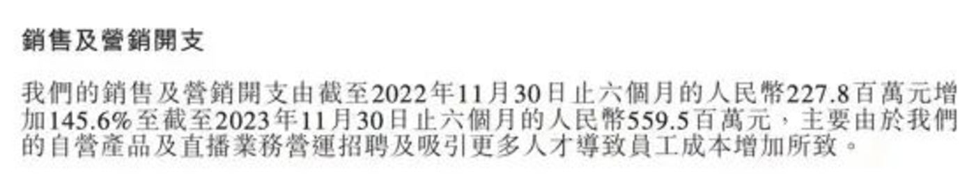 雖是玩笑話,但是從財報數據上來看,顯然利潤率不升反降。實際上,2023財年下半年(2022年12月-2023年5月),東方甄選為了挖掘新流量已經加大了銷售及營銷開支,下半年相較於2023財年上半年環比增長70%,已經導致下半年淨利潤環比下降32.8%至3.9億元。
