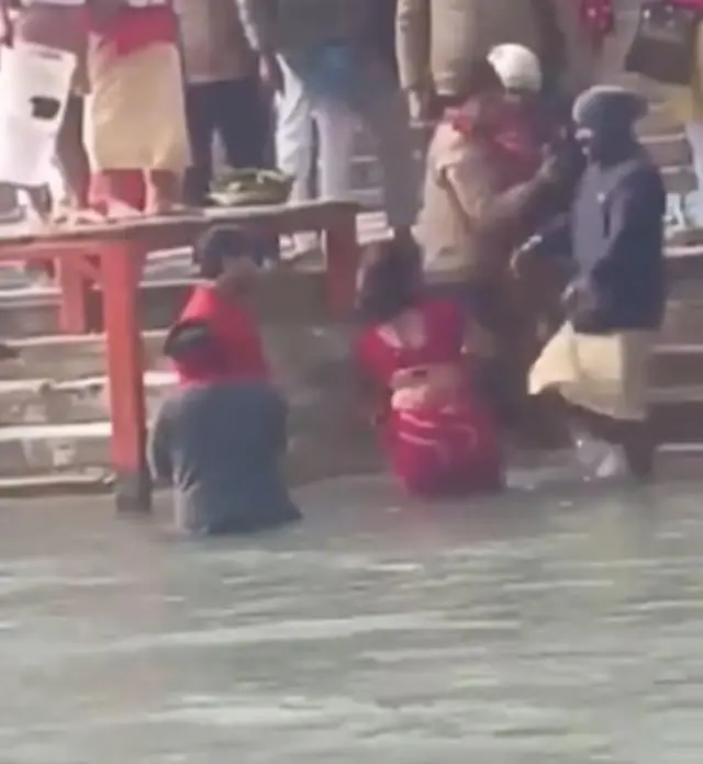 這時候路人已經感覺到了危險,要求這家人停下來,但他們堅持將男孩放在水下,並稱這對印度教徒來説是神聖的。