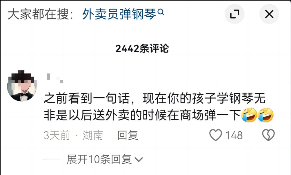 現在外賣員彈鋼琴視頻下,評論區浮想聯翩。