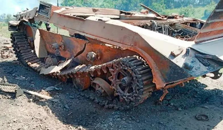 ▲被TM-62M反坦克地雷炸燬的BMP步兵戰車。