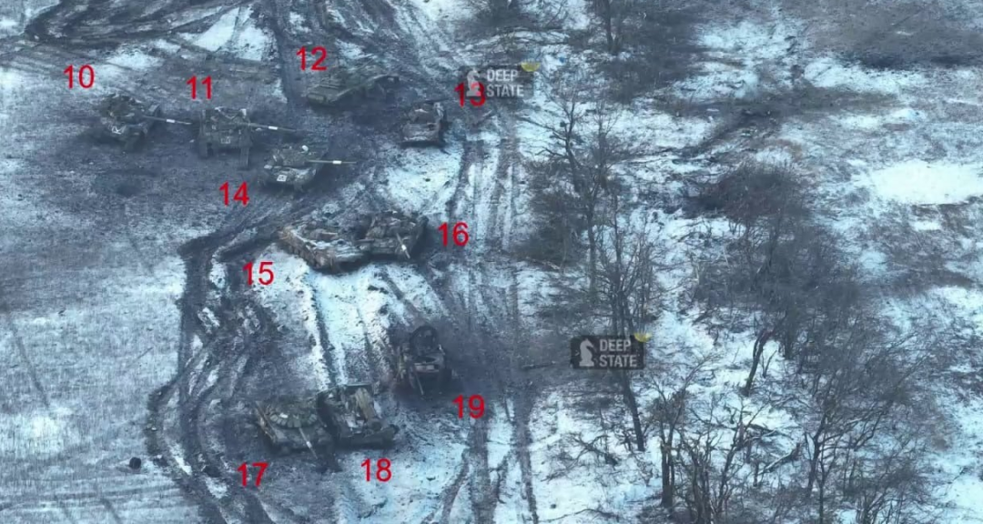這就是烏軍利用事先佈設的反坦克地雷搞伏擊的典型戰例,烏軍先埋雷,然後地雷位置提前設定好火炮射擊諸元,一旦俄軍坦克觸雷,炮火和無人機立馬就招呼上去了。