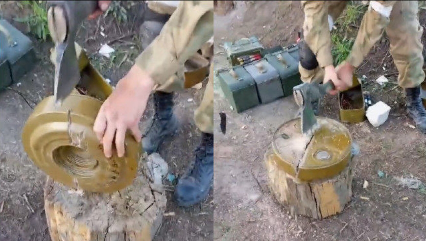 之前網上就流傳過一段俄軍士兵用斧子砍開反坦克地雷的視頻,不過這種暴力虐待方法非常不值得推薦,因為如果長期在温濕度達不到條件的地方,鋼片碟簧壓發機構會鏽蝕,導致壓發力矩減小,現實中,就曾發生過使用實雷講解示範反坦克地雷不易被人引爆時,卻又被踩爆的慘痛事故。