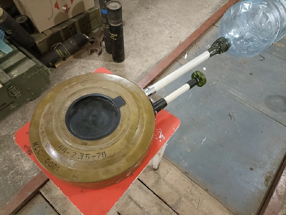 ▲改裝成多旋翼無人機彈藥的TM-62反坦克地雷