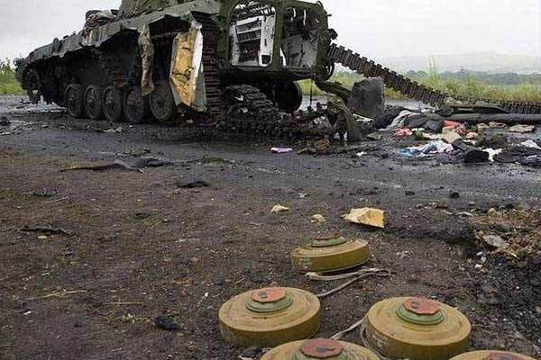 在烏克蘭長達數千公里長的戰線上,俄烏雙方在主要作戰方向上的道路、橋樑、樹林等關鍵地段,佈設了大量型號繁雜的地雷。像在烏克蘭北部切爾諾貝利與白俄羅斯接壤的重點地區,烏軍就在此佈設了1000萬枚至2000萬枚地雷,雷區最寬處超過10公里。