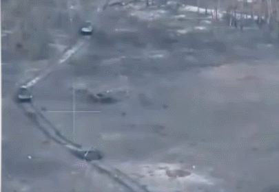 結果,走在最前面的俄軍坦克觸發TM-62地雷後瞬間發生劇烈爆炸,當場趴窩,無法再移動分毫,後續隊伍繼續上前的時候,隊尾那輛裝甲車又被烏軍反坦克導彈擊中,搭載的步兵迅速下車逃向旁邊的小樹林。
