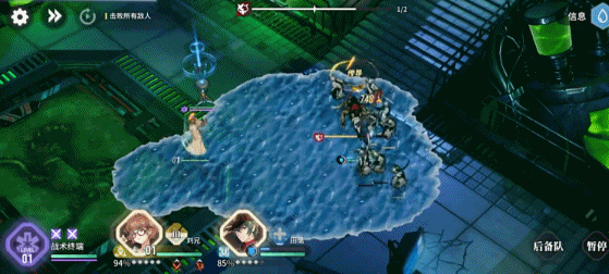 又比如,場景之中有消防栓可以利用,生成一片水區域,那你是否考慮可以給隊伍帶點雷屬性or霜屬性角色,最大程度利用水域,使得敵人麻痹或凍結呢?
