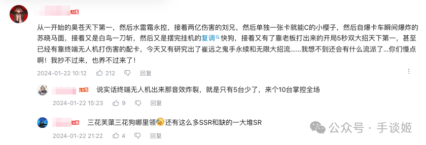 你還別説,你還真別説,姬就好圍觀這種不走尋常路的。要知道,遊戲剛開服的時候姬還刷到許多負面評價,然而開服僅僅過去一週,上頭、研究、好玩、巡癮等關鍵字已經倍殺了前者。