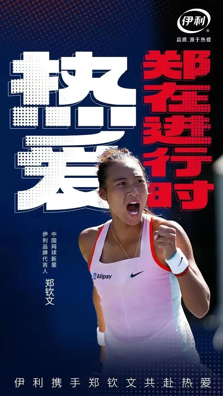 如果説每一個夢想背後,都有着無數支持者的推手,無疑,那些早早投入大量資源支持新生代球員的品牌功不可沒。2022年,在鄭欽文職業生涯首進巡迴賽決賽之際,伊利官宣其成為品牌代言人,並打出了“以網球為約,共赴熱愛盛宴,熱愛鄭在進行時”的宣言。