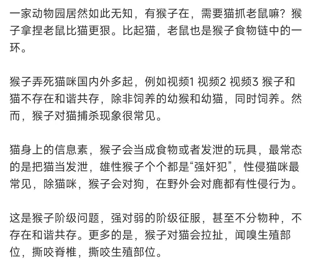 放任猴貓共處,導致貓咪被猴子虐待?!遊客反饋多年,園方如今三發通報才行動_風聞
