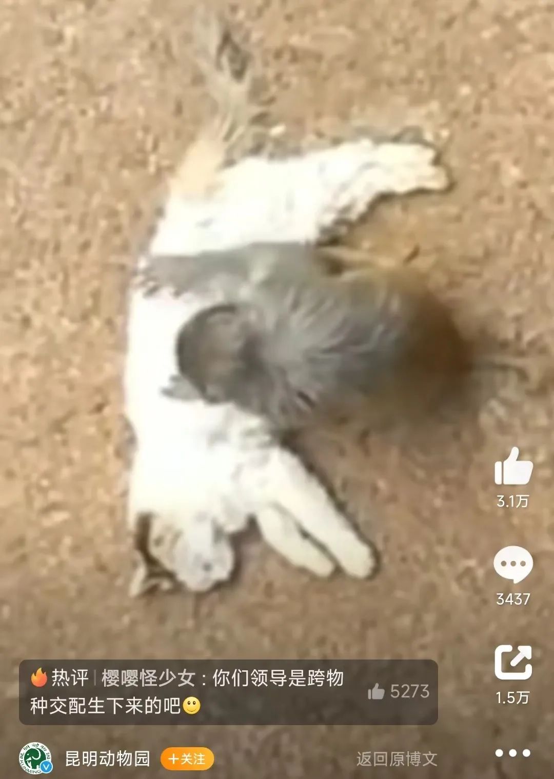 △ 昆明動物園上傳的猴子幫貓抓蝨子的視頻