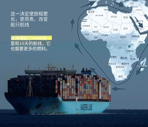 ▲繞道好望角,航線增加4000英里,需要10天的航程(機翻)